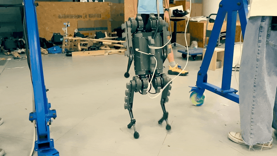 此前也出现过可以从四足过渡到两足的机器人,但它们的设计总是非常刻意,而且在重量、复杂性和成本方面付出了代价。而这项最新研究的独特之处在于,它的目标是适用于任何四足机器人——通过一些非常小的硬件,你的四足机器人就可以变成两足机器人。这种双足化部件的机械部分是一个 3D 打印的支撑杆,被安装在四足动物每条后腿的胫骨上,以提供额外的支持,使机器人能够站立和稳健地行走。如果没有胫骨附件,机器人就不会有静态稳定性。这在机器人站立时尤其有用,因为它的质心在这个过程中得到了充分的支撑。视频显示,这种方法可以让一种 看起来像 Mini Cheetah 的机器人站起来直立行走,但其实,只要满足一些基本要求,其他机器人也能用同样的方法。