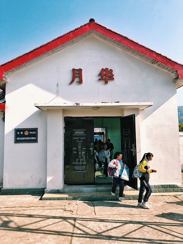 车窗之下,背对着我们的身影,是那位女列车长。几个小时之前,她还扮演着一座动物园园长的角色。而这个当下,她又变成了一名临时兼职的校长,对着站台上那些急匆匆的学生们喊话……“同学,那边的车厢比较空……慢点啊,不要跑,车不会开的。”在她身前矗立着的,则是这座小站唯一的入口:一座简易的尖檐主体站房,红瓦白墙。正中间两个红色的“月华”大字,清晰可辨。