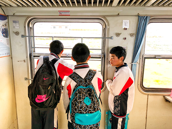 那些正值豆蔻年华的小小“人头”,还在半开半闭的车窗之下攒动着。他们一个接一个从月华站的安检门中小跑过来,以鲤鱼跳龙门般的轻盈,昂首跨上这趟绿色的列车,暂时远离那些之乎者也和ABC的困扰,重新做一回那个山野里的孩子……望着那一张张年轻的脸庞,这辆饱经沧桑的绿皮火车,仿佛也变得容光焕发了起来。