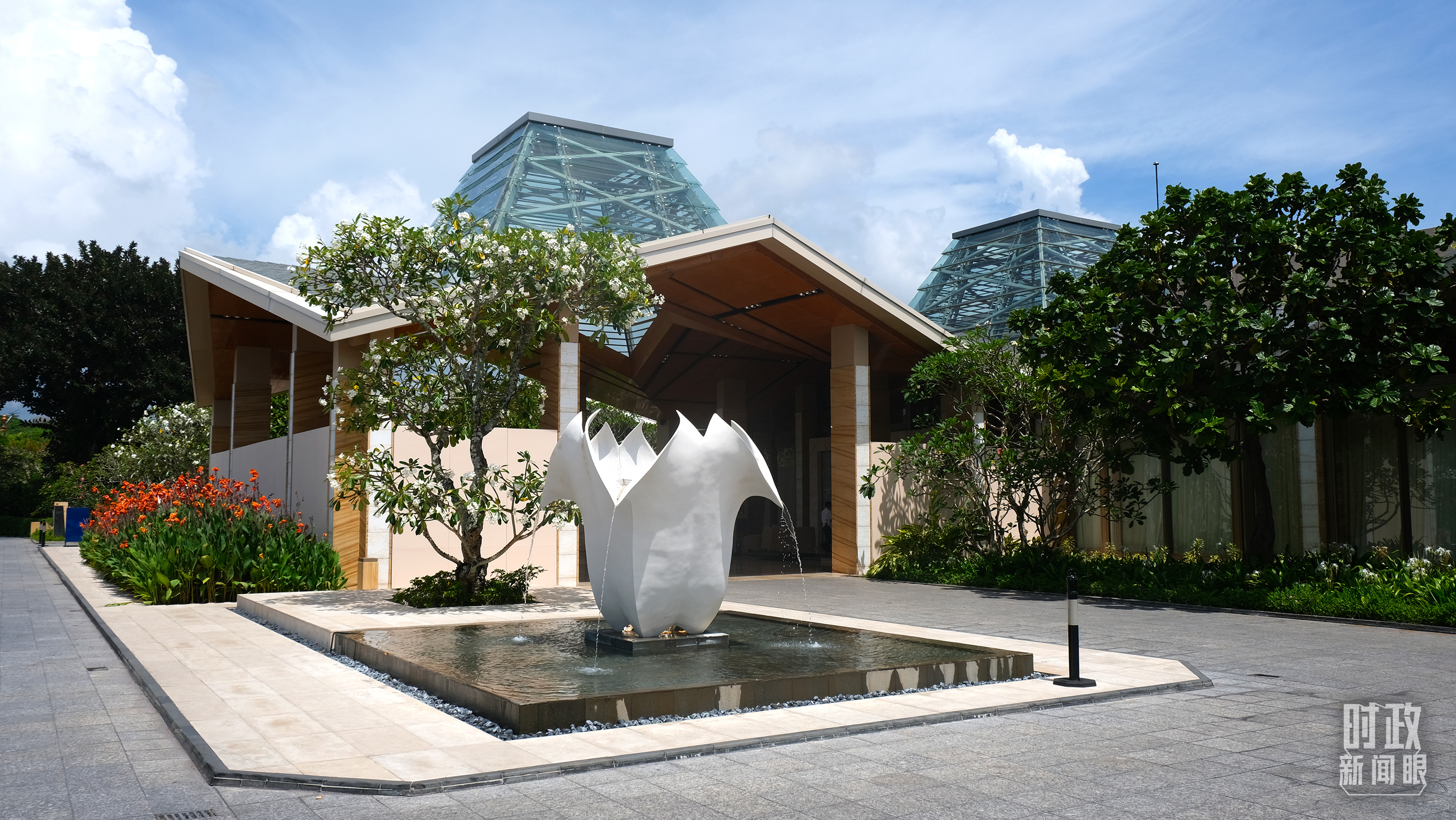 会议楼门口正在绽放的鸡蛋花,花语是孕育希望。(总台央视记者韩锐拍摄)