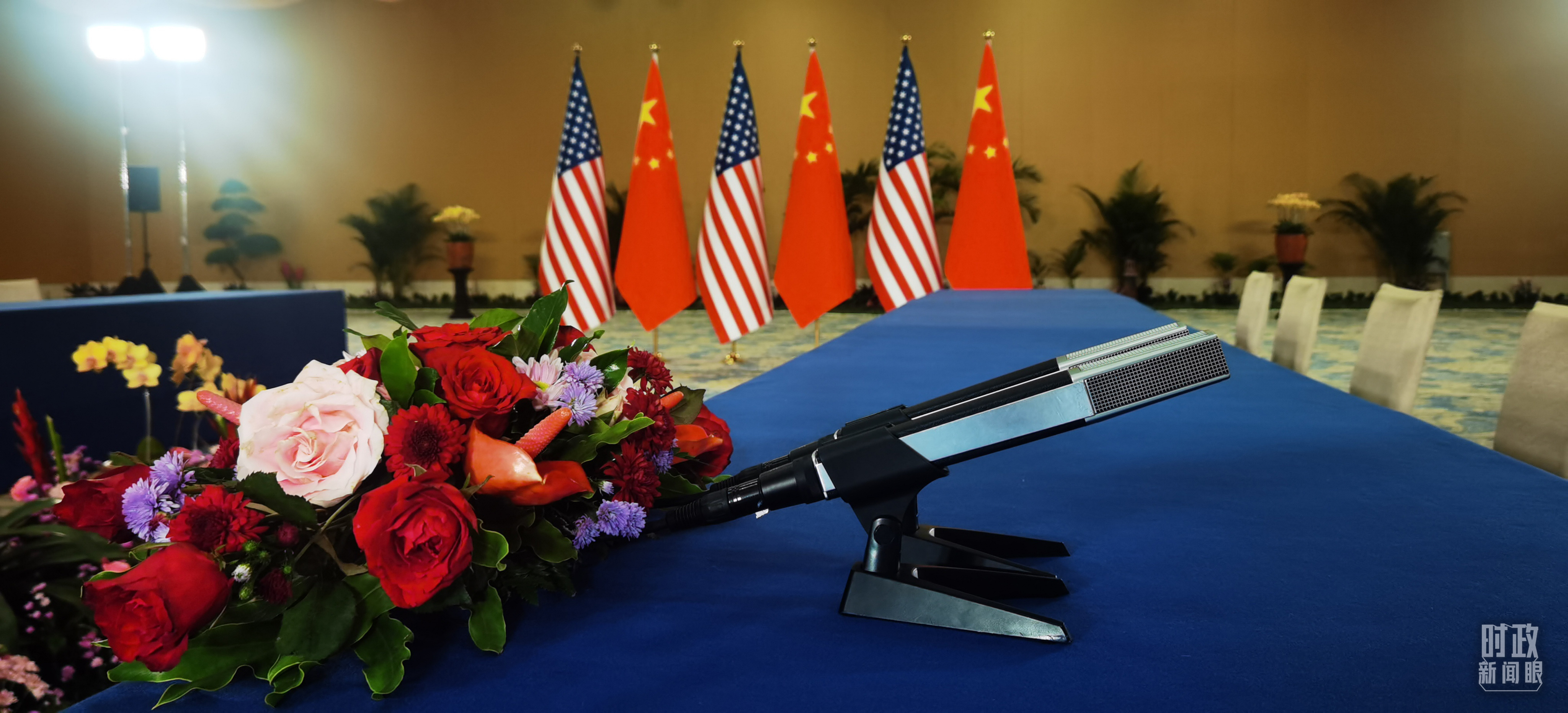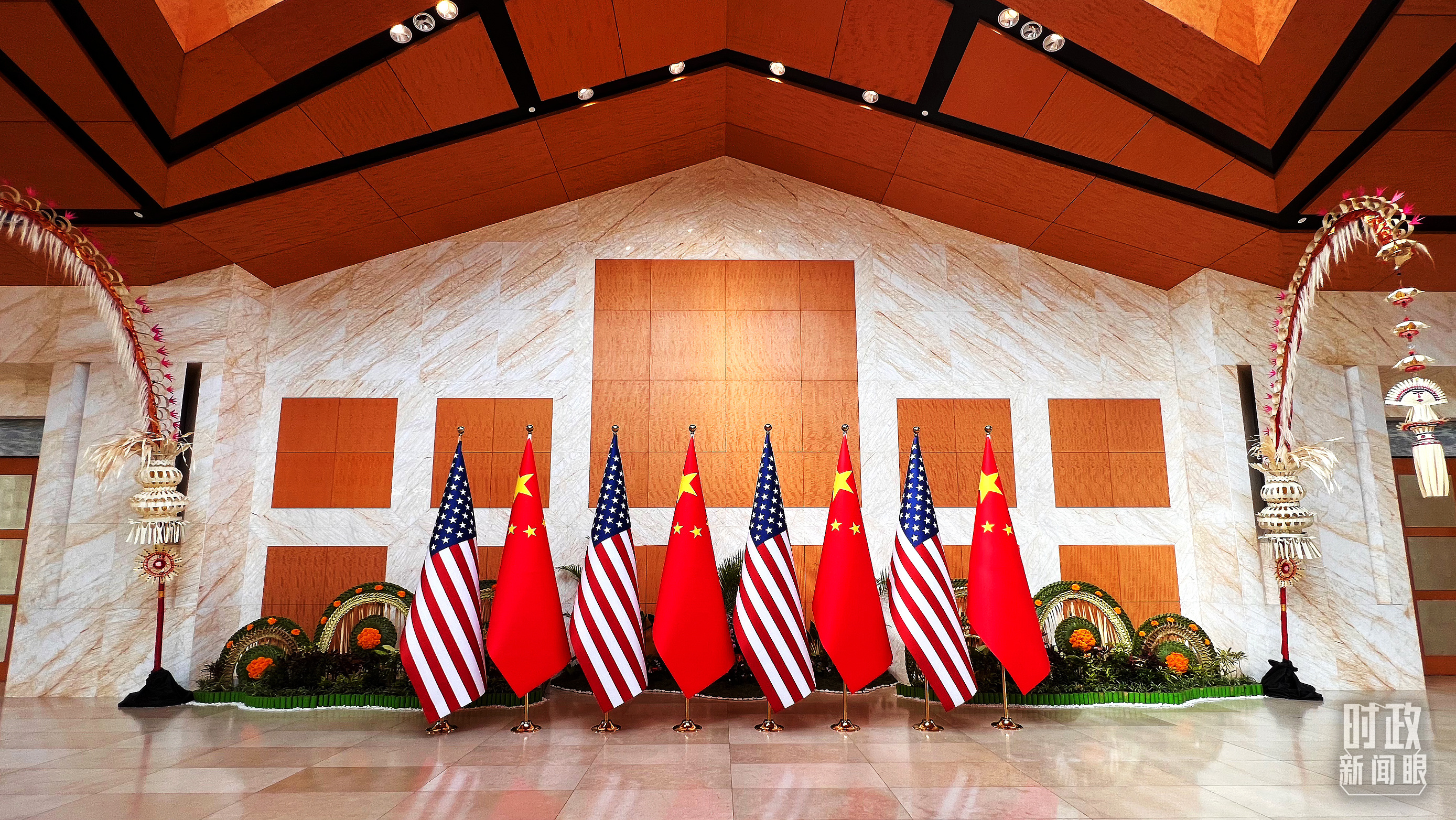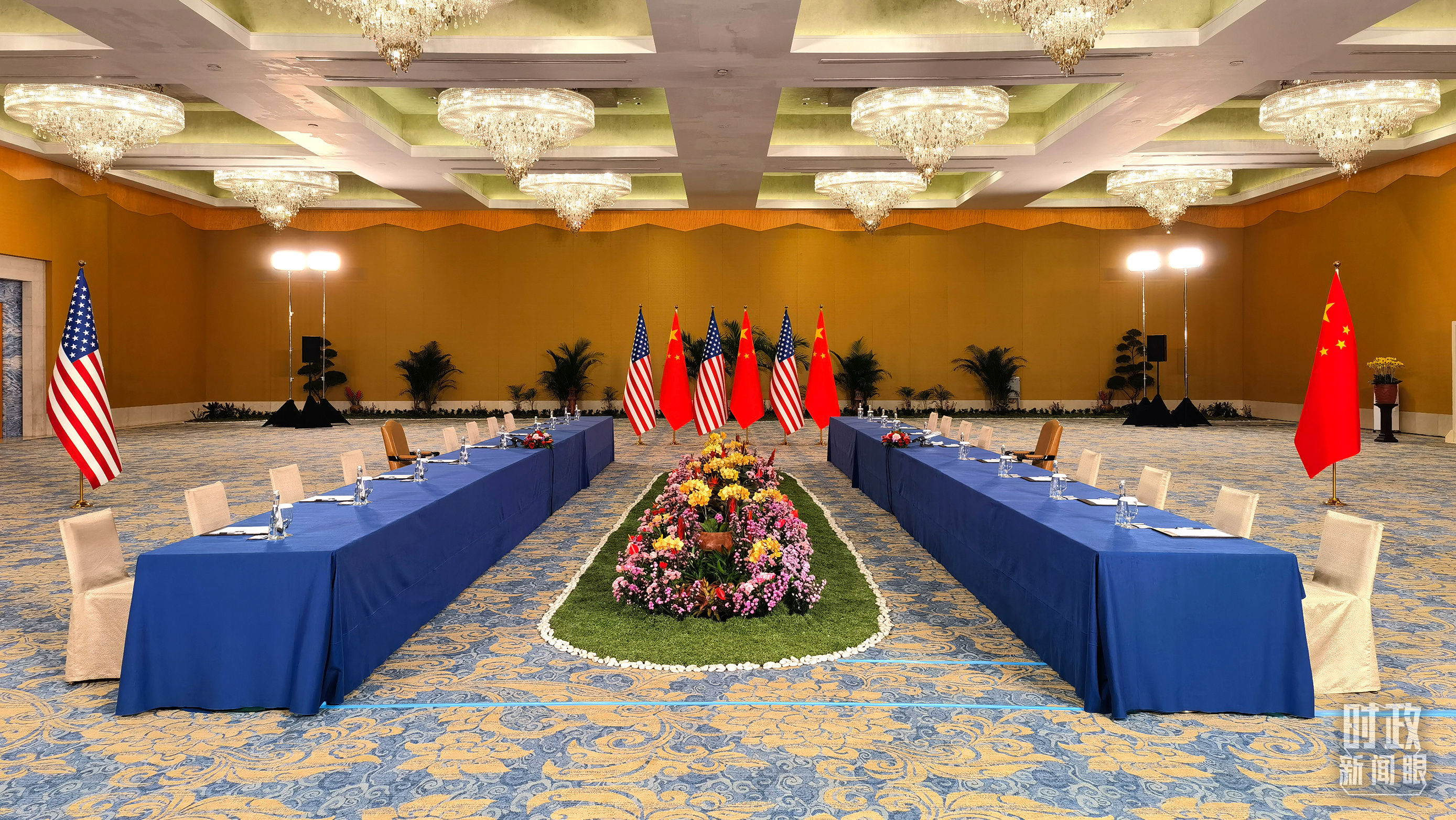 中美元首会晤开始前的现场。(总台央视记者石丞拍摄)