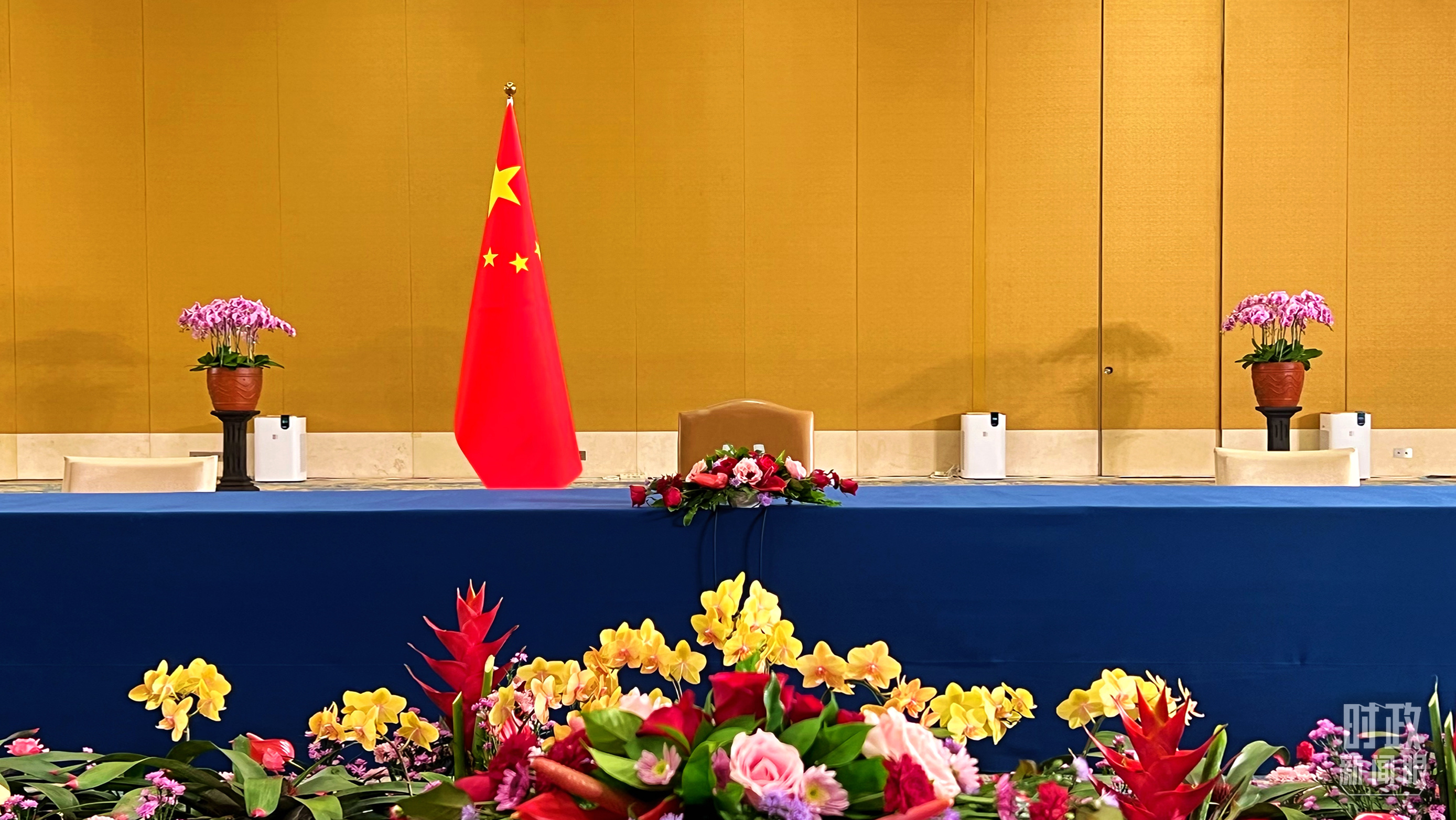 中美元首会晤现场的中方座席。(总台央视记者程铖拍摄)