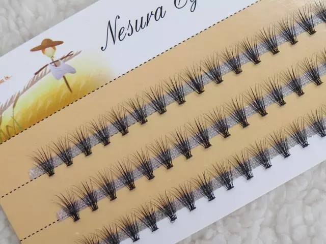 交叉款睫毛的每一根基本都在向左或者向右偏,不是直直向前,戴起来比较自然。簇状的则如下图,配“芭比”感的日系妆容更合适。