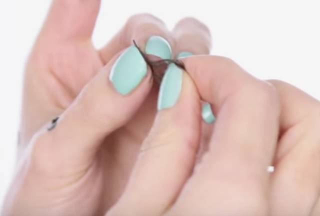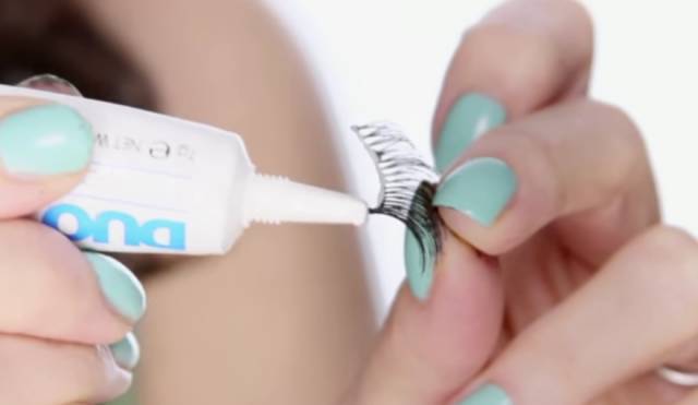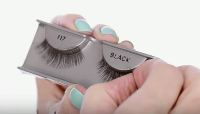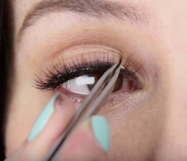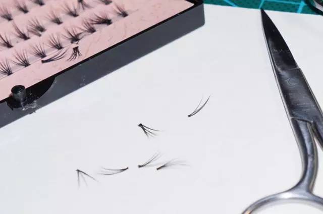 选好假睫毛,把它揪下来。