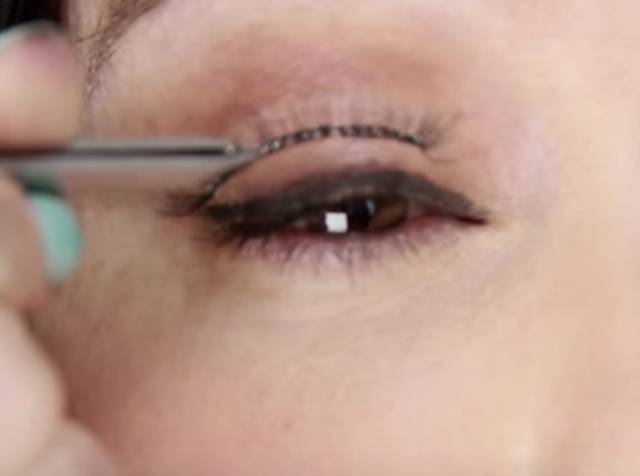Lisa用的是Ardell 117把假睫毛剪成合适的长度,然后扭扭扭,把梗子扭软。这步非常重要!睫毛边缘是个弧线,但太硬的梗只能直着从眼尾戳到眉头,成为眼睛的切线……