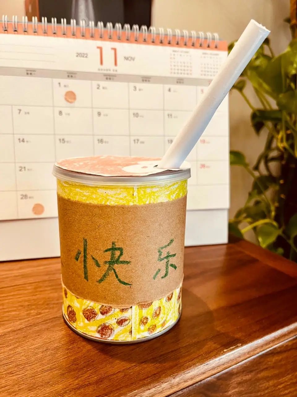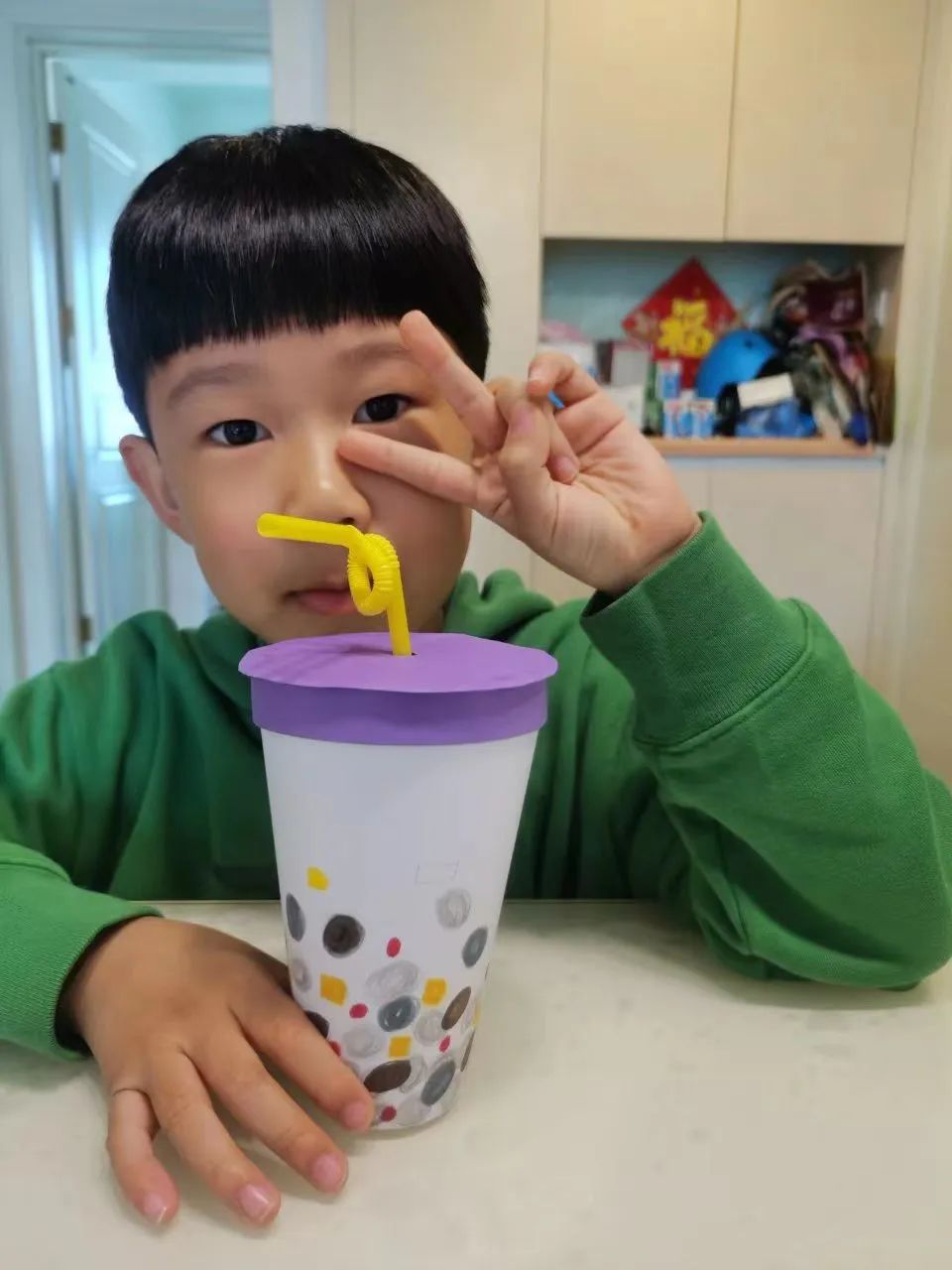 这个周末我已经把奶茶杯邮寄给爷爷了,等回老家我要请爷爷喝一杯真正的奶茶!
