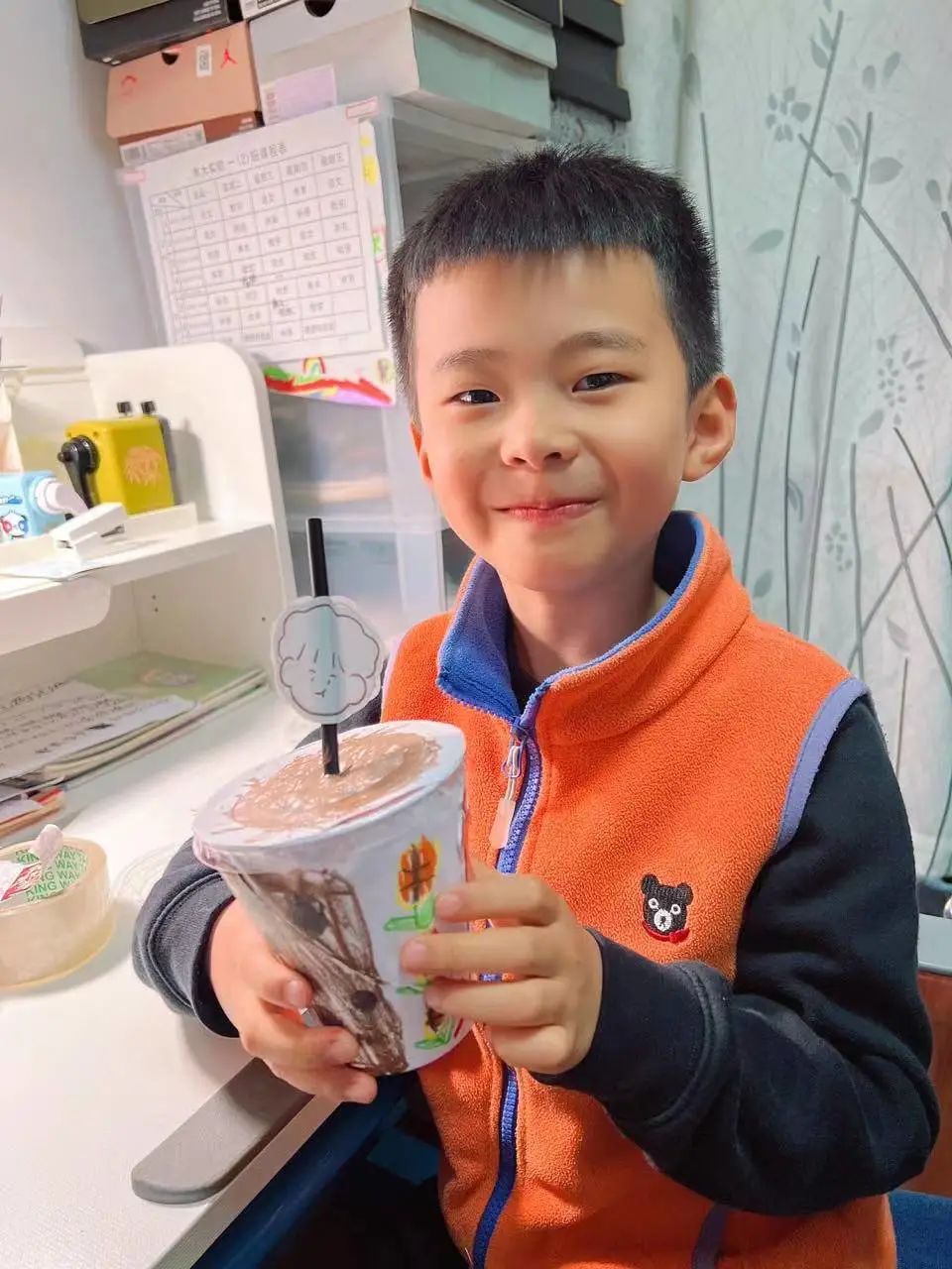 “张诺晨,这个奶茶杯送给你!祝你身体健康,永远快乐!”