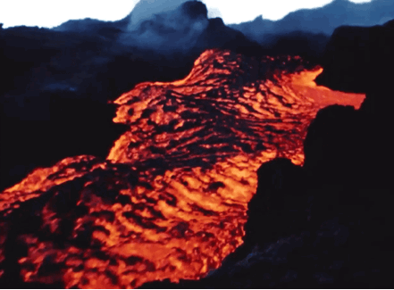 有剧烈的喷发,也有缓慢的溢流。伴随着空中溢起的熔岩碎屑,地球由此新生和裂变。