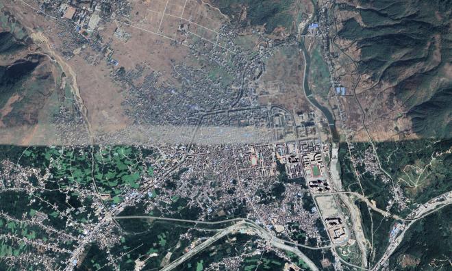 从卫星地图可以看到,十年间,冕宁县城市面积不断扩大,呈现从中间向四周扩散趋势,除中心城区面积变大外,重要交通干线周围的房屋数量也越来越多。同时,在县城东部,明显可以看到体育场、住房、学校等设施完善。