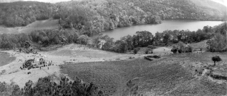 1977年,彝海边,第一碑简朴的揭幕仪式(图片来源:刘广慈)