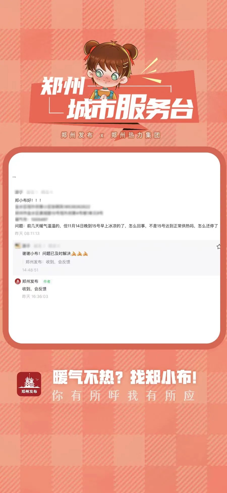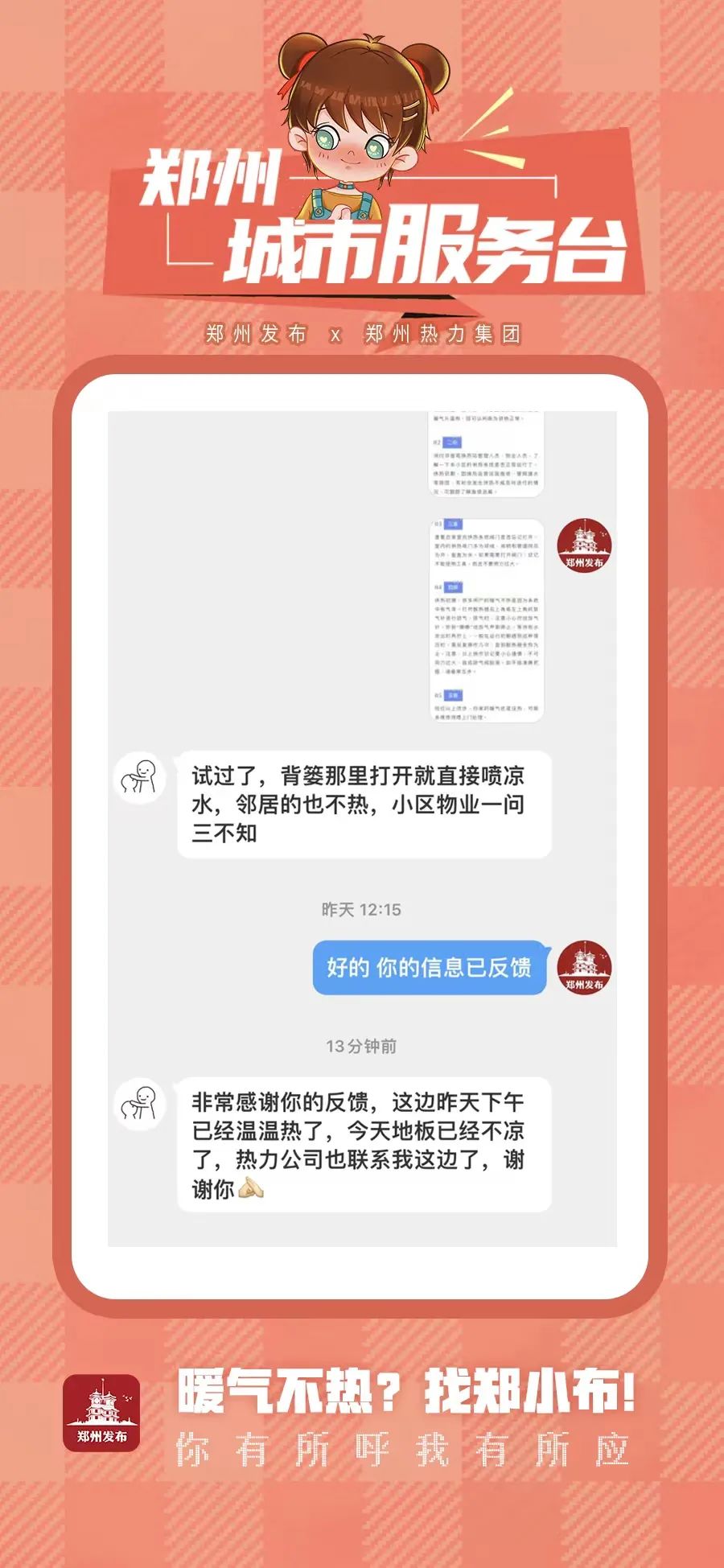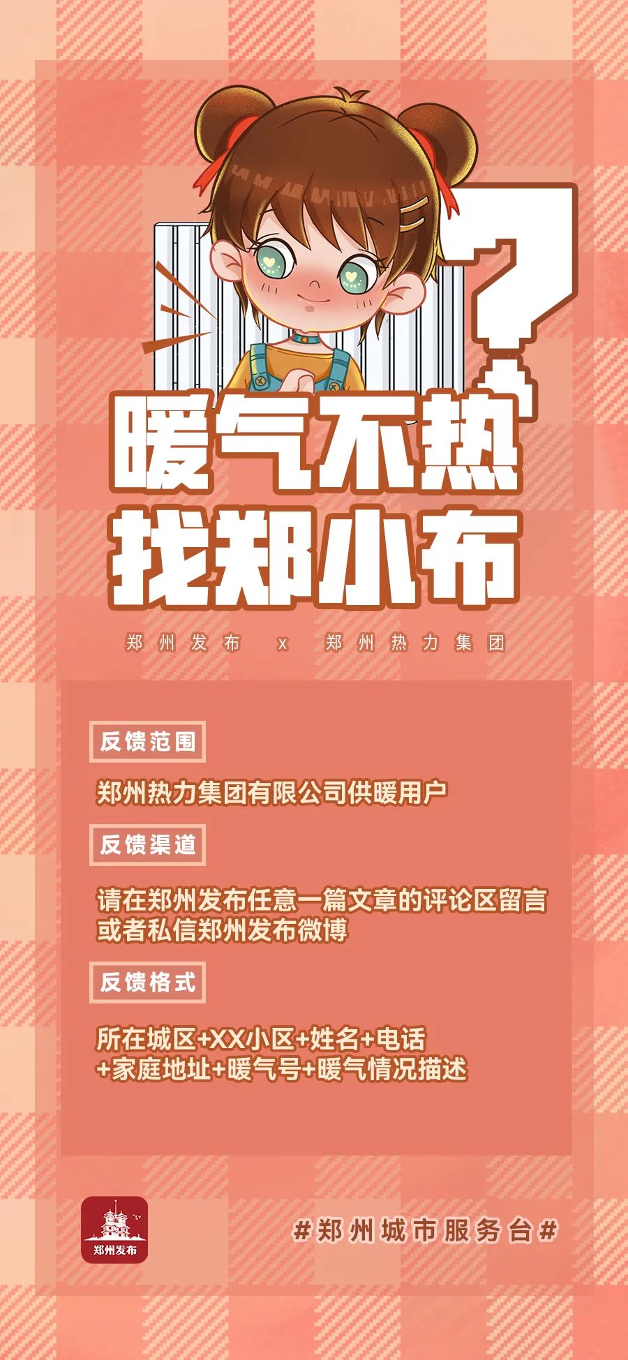 郑州城市服务台|家里暖气不热?别急,我们帮您解决!郑州发布联合郑州热力集团有限公司开展“我为群众办实事之——解决暖气不热”的实际行动,如果正式供暖之后,您家里的暖气不热,郑州热力集团将会通过“线上指导+线下派出工作人员”等方式为您解决问题。