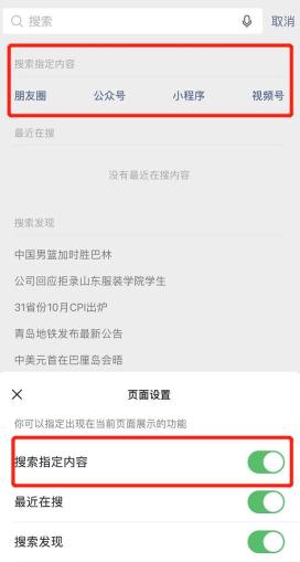 此前,“搜索指定内容”的模块一直固定在搜索页面的顶部显示