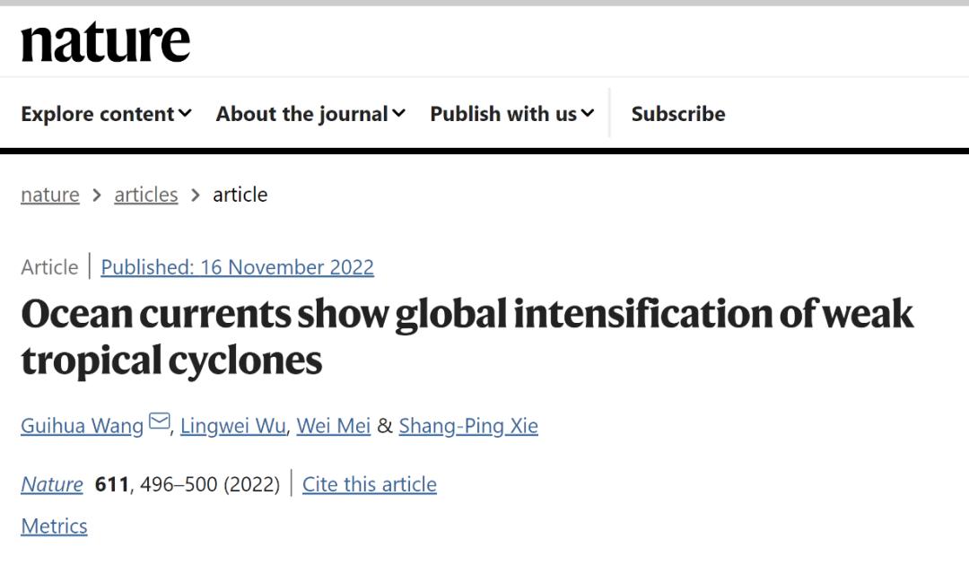 Nature发文!复旦大学大气与海洋科学系/大气科学研究院王桂华课题组发现近30年全球弱台风显著增强