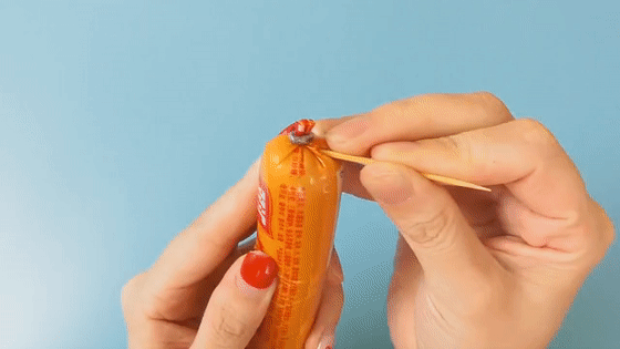 牙签巧剥火腿肠