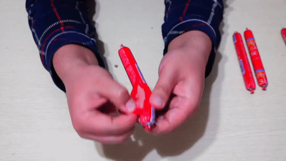 双手握住火腿肠的两边,然后火腿肠的中间朝着不同方向扭,扭着扭着,一扯就断了~~