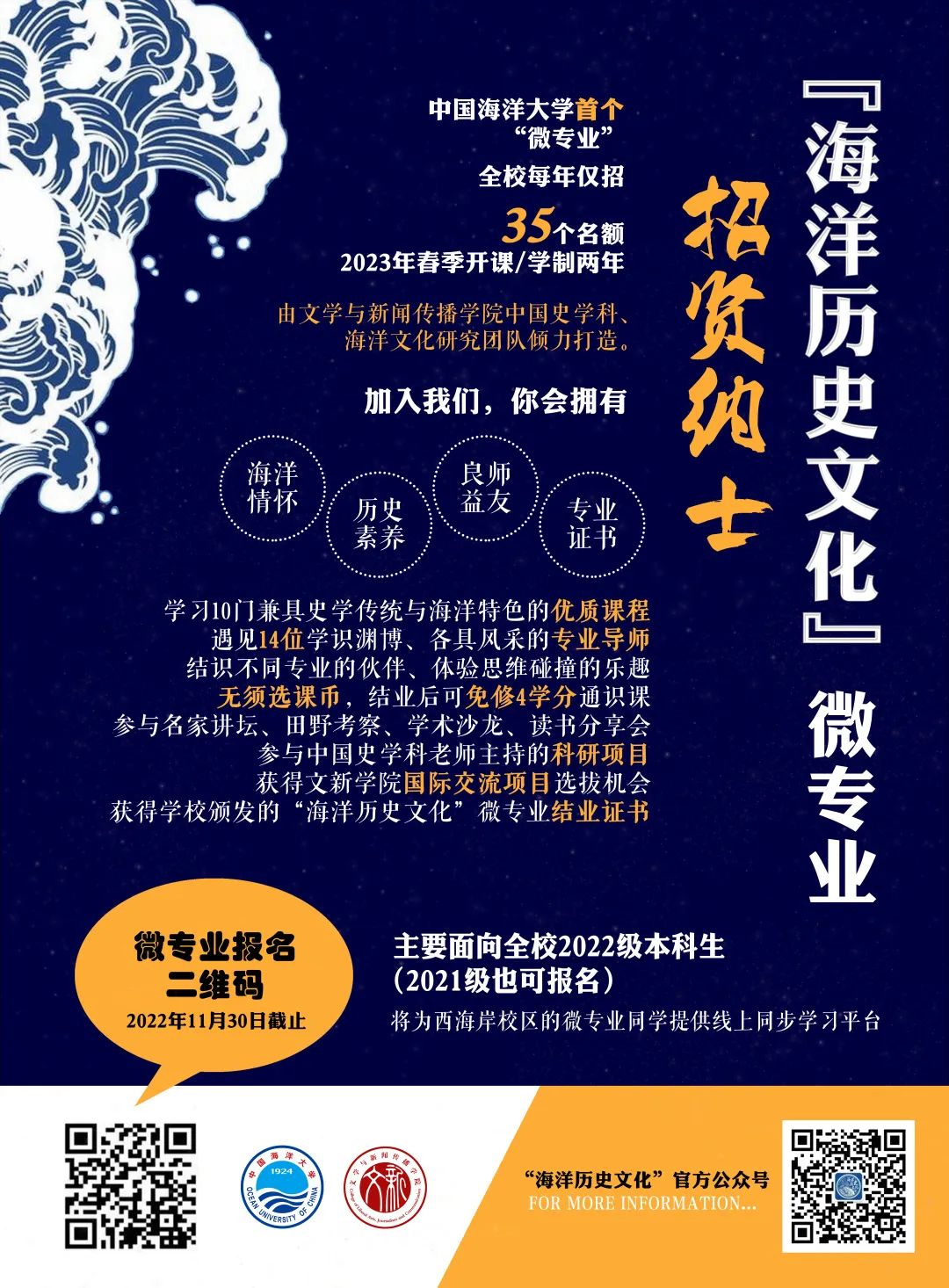 原标题:《海大“海洋历史文化”微专业,招生!》