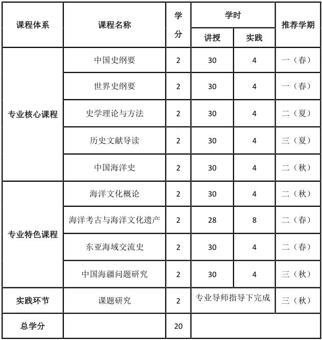 修读本专业全部课程(20学分)合格后可获得学校颁发的海洋历史文化微专业证书,并可替代通识课程4学分。
