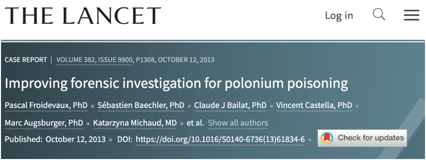 另一个原因就是这篇论文对阿拉法特去世真实原因的大胆推测——钋中毒。