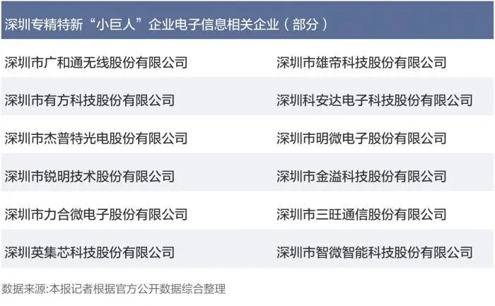 从更细分的行业来看,深圳电子信息“小巨人”企业主要分布在电子元器件、通讯设备制造业、集成电路等领域。