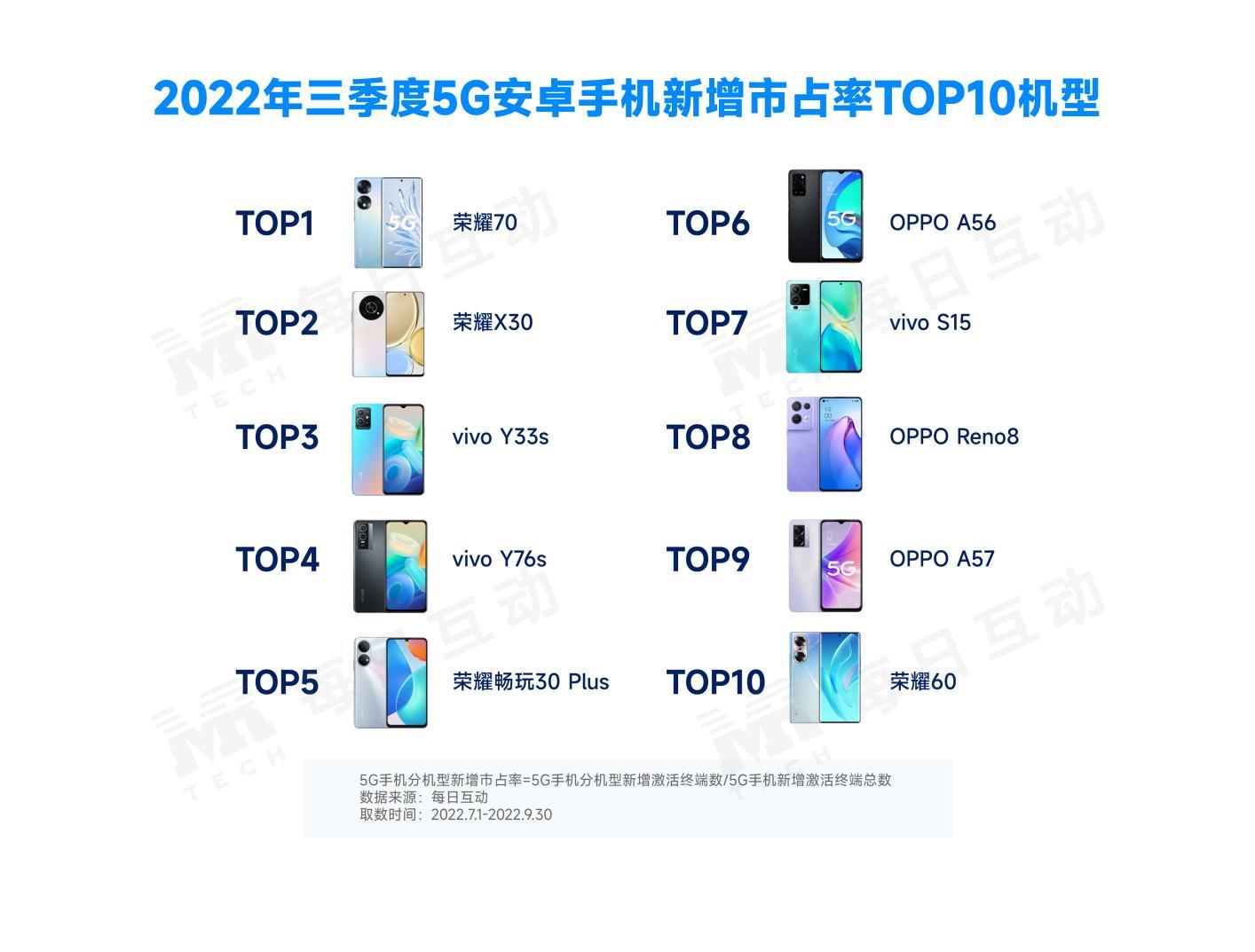 2022年三季度5G手机市场:国产手机市占率保持扩大 荣耀成热卖榜赢家