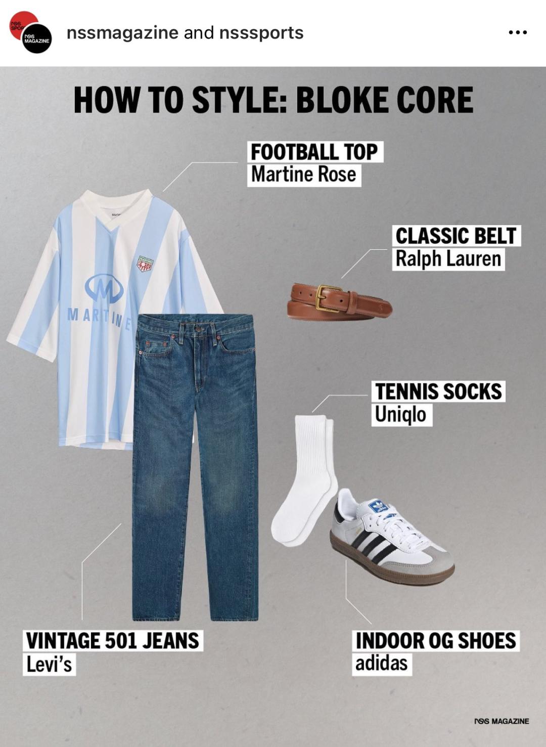 当然了,这种“土潮风”也可以简单粗暴地称为“复古球衣穿搭”。在bloke core一词出现并扩大影响后,也宽泛了它的定义,现在这种以球衣为主的穿搭都可以被称作bloke core。