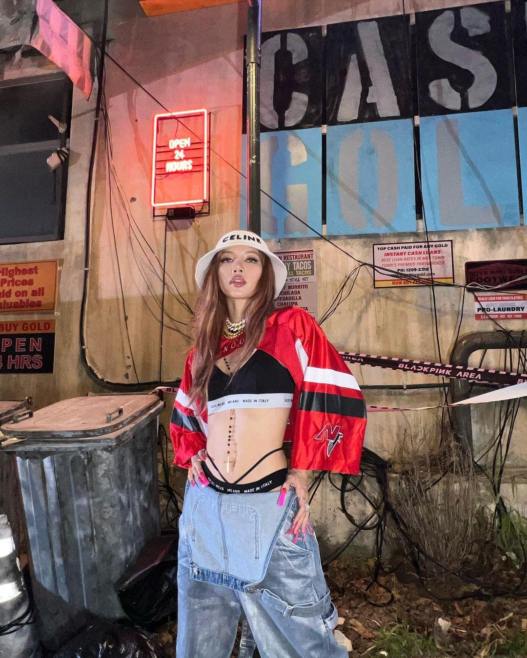 最近发专的BLACKPINK,也搭上了这阵风(YG家的造型师永远都这么会蹭热点,褒义)。在PINK VENOM的MV里,Lisa一件剪短的Neon Genesis Oddity红色短板曲棍球球衣。