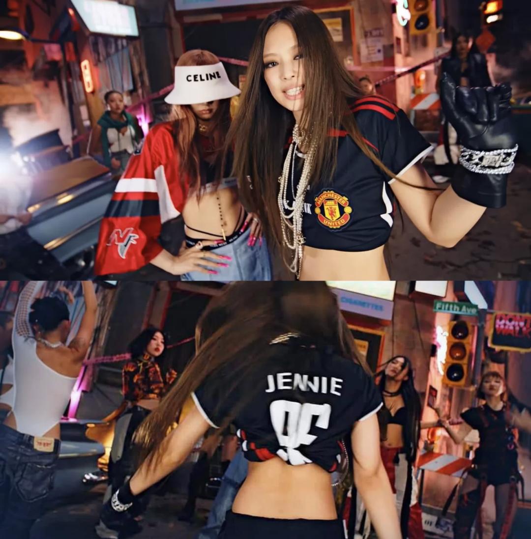 Jennie身上则是Adidas在2021年推出的Manchester United Teamgeist Jersey系列。不过她这件不是市售款,而是带有自己名字的定制版。