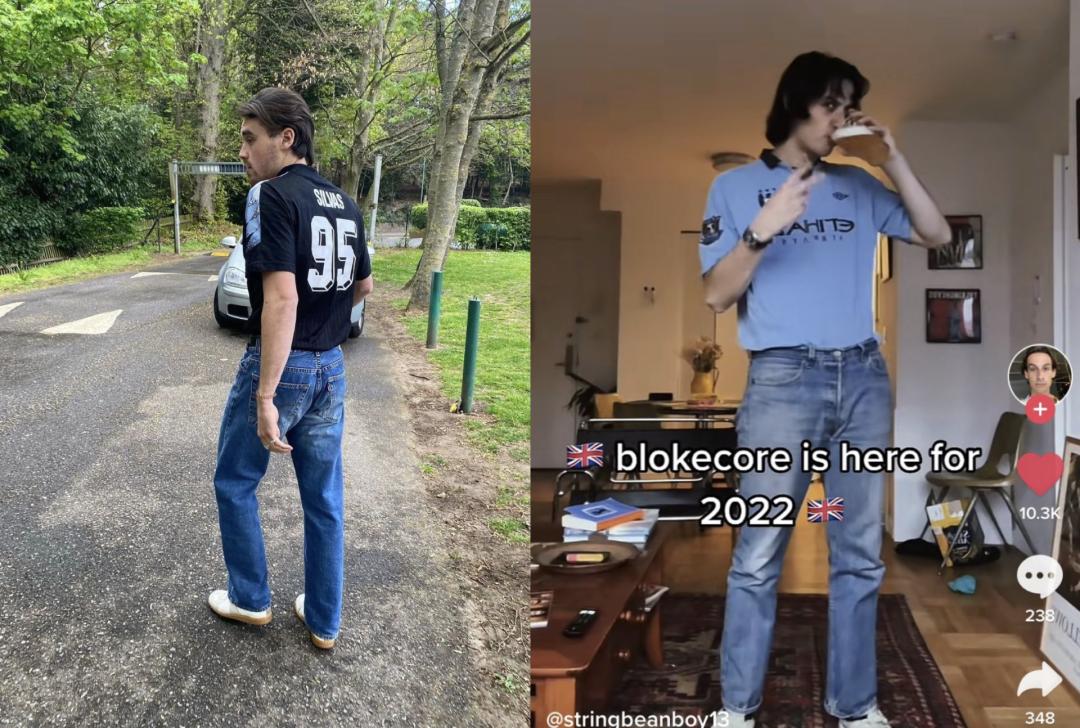 视频复刻了八九十年代英国酒吧球迷的经典装束,立马戳中了对y2k审美疲劳的Z世代,一击带火了“bloke core”。Bloke一词是英国版的“bro”,core则代表小众风格。