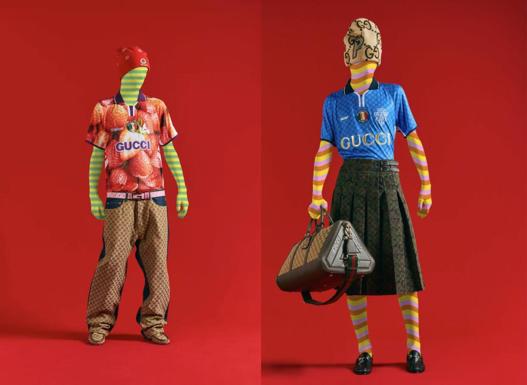 Gucci和Palace Skateboards的联名,除了Gucci经典的logo、印花点缀以外,版式上均参考了不同国家队和俱乐部的球衣。