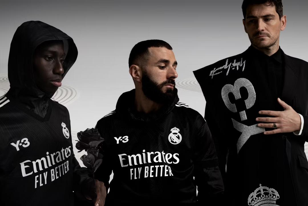 山本耀司旗下的Y-3和皇家马德里展开合作,为纪念皇马成立120周年。推出了2021/22的球衫,经典三条杠加上双方的标志性Logo,再现yamamoto的“黑暗美学”。