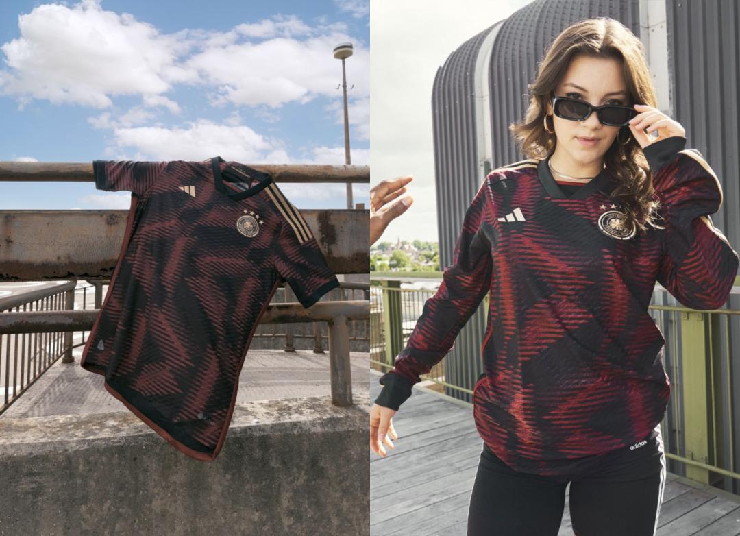 帅哥男团德国队的球衫,纯黑和暗红配色,颜色低调好穿不挑人。(很多人不愿意碰球衣有很大原因是因为它那绚烂荧光色……)