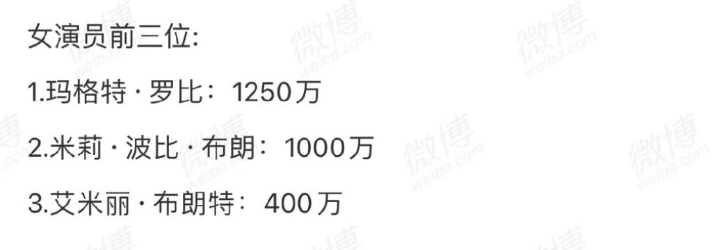 要知道,之前好莱坞曝出的今年最高片酬女演员小丑女,只有她的一半。