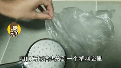 喷头用久了会产生水垢,难以清理,把喷头放进塑料袋里,再往里面倒入食盐。