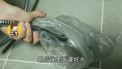 打开开关放水没过喷头,把袋子系住。