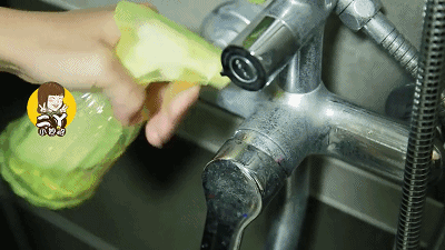 水龙头经常容易堆积水垢,光用抹布是擦不掉的。我们可以准备一个装了清水的喷壶,然后再加上一些食盐。