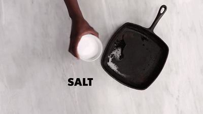 铁锅生锈只用刷子刷根本刷不掉,可以靠食盐来帮忙!