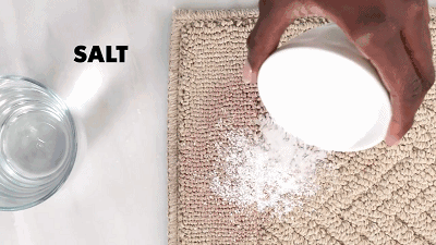 然后把食盐撒在污渍处,静置半小时,最后用吸尘吸吸干净,或者拍打干净就可以了!