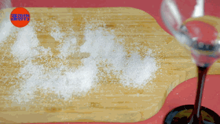 其实这时候只要用点盐,省时又省力!在撒出来的蛋清的位置撒上盐覆盖。