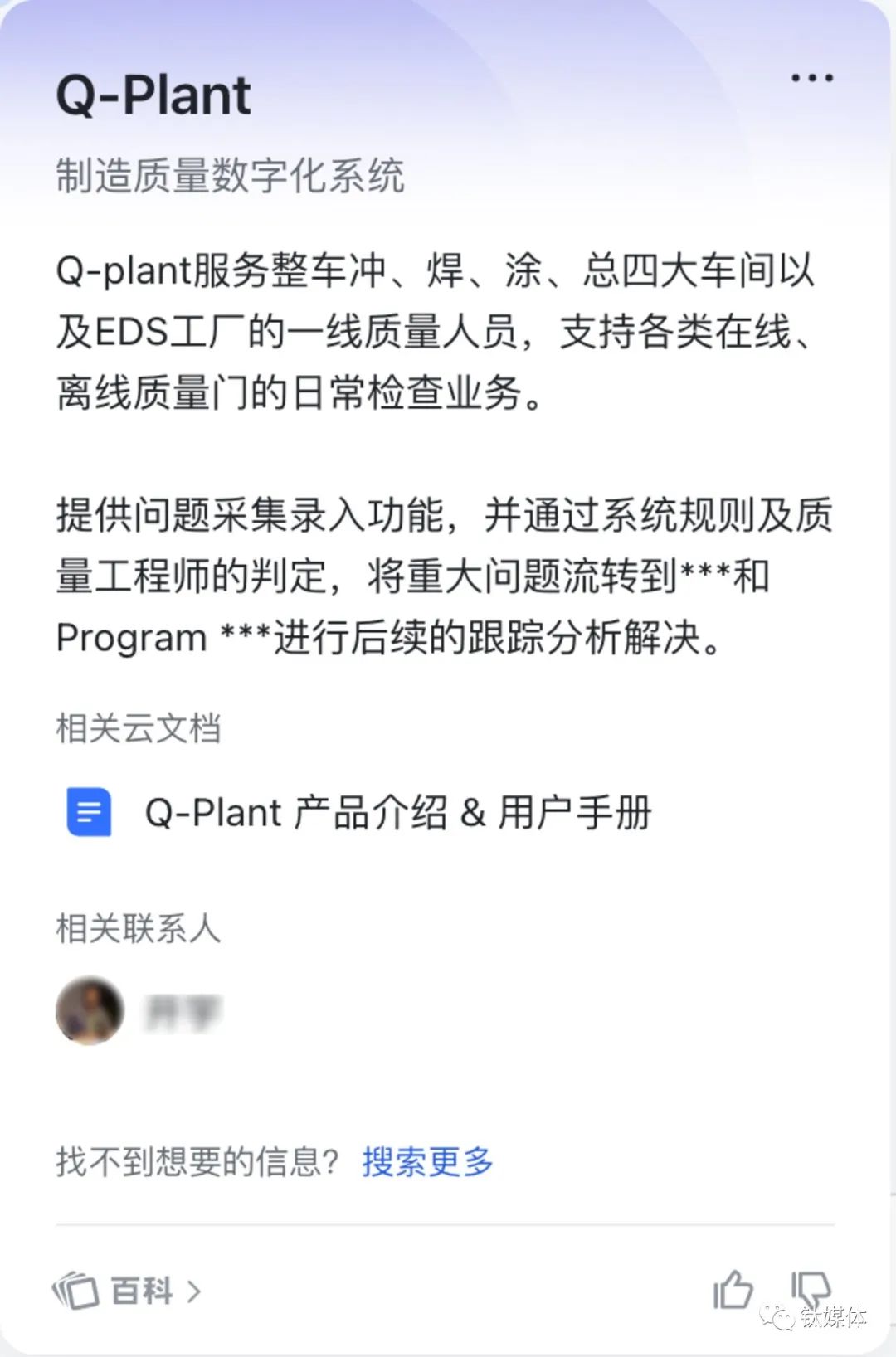 2021年5月,蔚来企业专属知识网络“企业百科”立项。至今企业百科已有 6000+ 词条,每天约 10000+ 位员工在飞书通过企业百科获取信息。