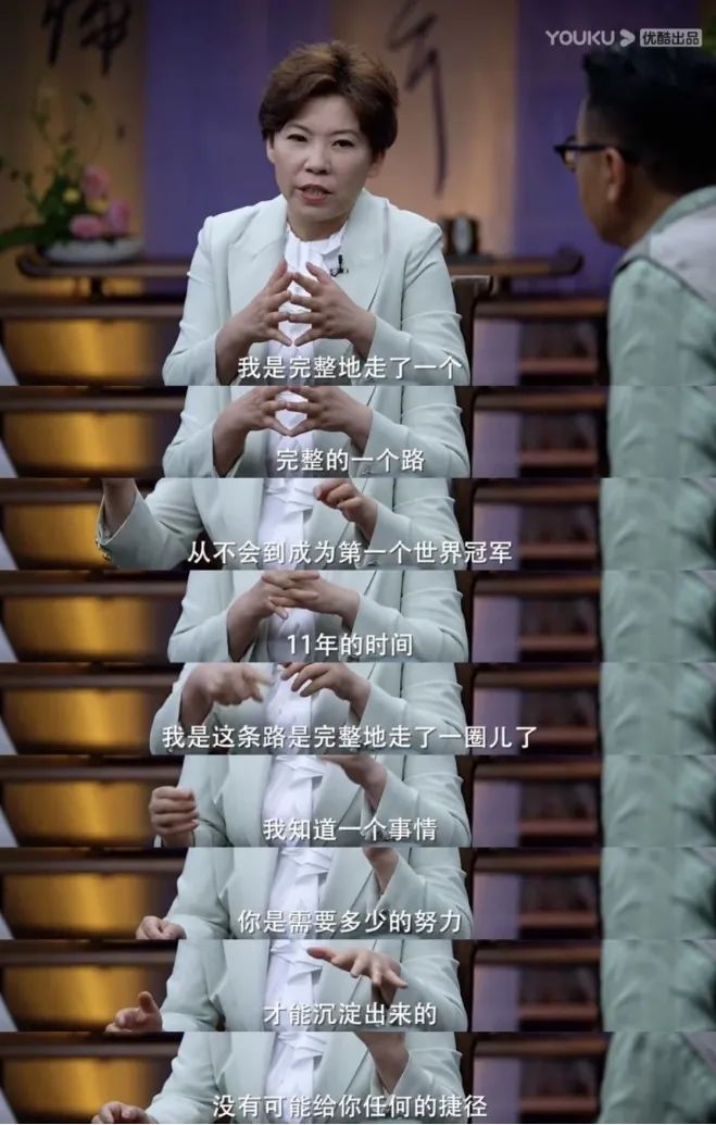人生其他的赛场上,邓亚萍从未停下学习和追寻自我的脚步。圆桌派第六季时,邓亚萍分享了自己的世界观: