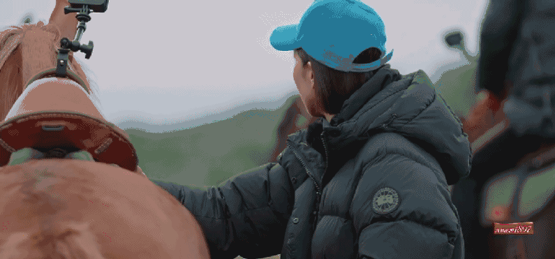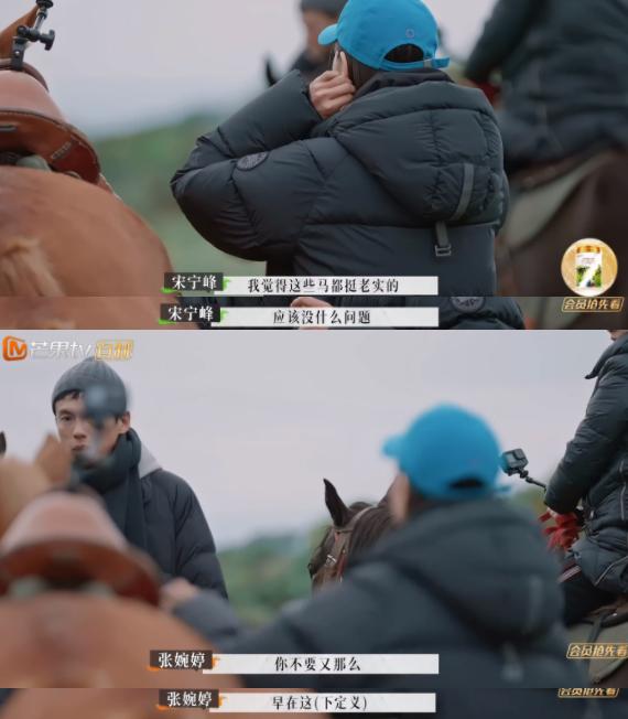 宋宁峰在一旁帮助长辈Lisa上马,张婉婷站在那迟迟不上。