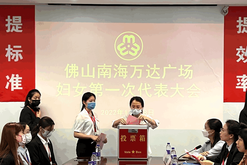 11月18日,佛山南海万达广场妇女第一次代表大会召开,来自万达广场商圈各企业妇女代表参加了会议,选举产生第一届妇联执委会委员11名、妇联主席1名,副主席1名,佛山万达广场商业物业管理有限公司总经理李慈凤当选为第一届妇联主席。