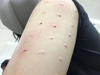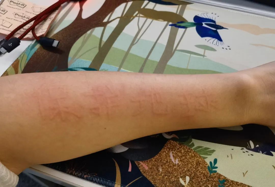 经常过敏的我,可以在手臂上写下钱钱钱钱……