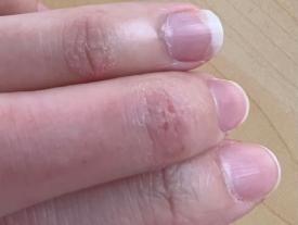 如果我白天吃带鸡蛋的食物,比如蛋糕,晚上睡觉的时候手指头会很痒、起皮疹,无意识地抓挠。第二天起来,手上会有抓破皮的伤口,刷牙洗脸碰到水就很疼。