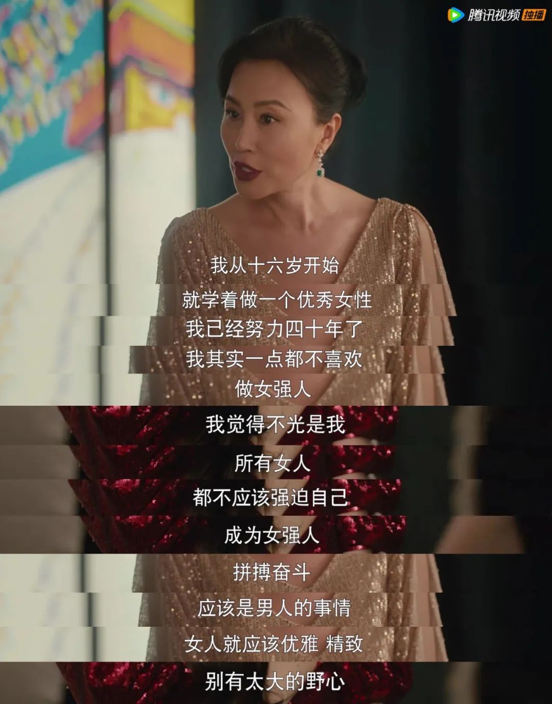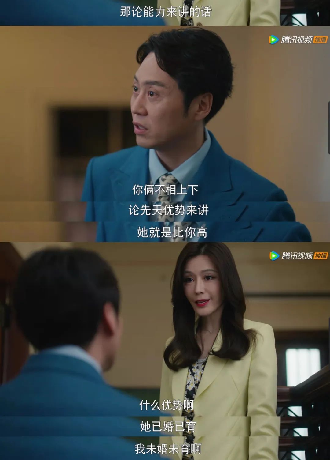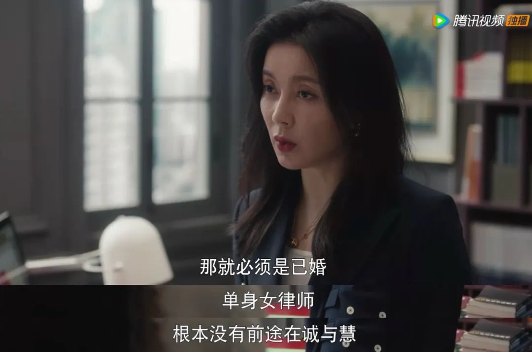 女主的野心,欲望,能力只出现在台词和别人的口口相传里,“不能单身,也不能离婚”,否则在职场上走不下去的理念却在剧中根深蒂固。
