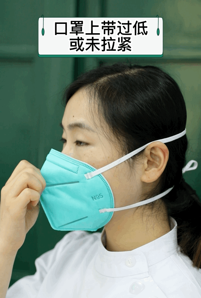 ► 口罩下带位置过低,或未拉紧,口罩下部会漏气