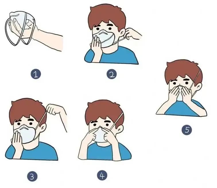 气密性检查:用手罩住口罩并快速呼吸,确保口罩不会漏气,佩戴完成。