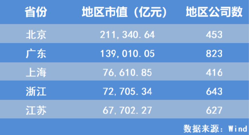 不过,上市公司总数量和总市值关联性不强,数量最多并不等同于地区市值最高。