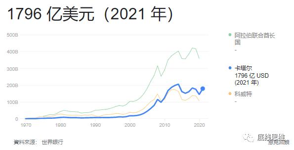 毕竟,就算石油财富再怎么丰盈,卡塔尔终究是一个小国,其国土面积为11521平方公里,这面积甚至略小于天津(11966平方公里);虽然人均GDP在2019年一度达到77136美元的可观高位,但其2021年的GDP总额也仅为1795.71亿美元,2290亿美元的投资远超其一年的GDP总额。