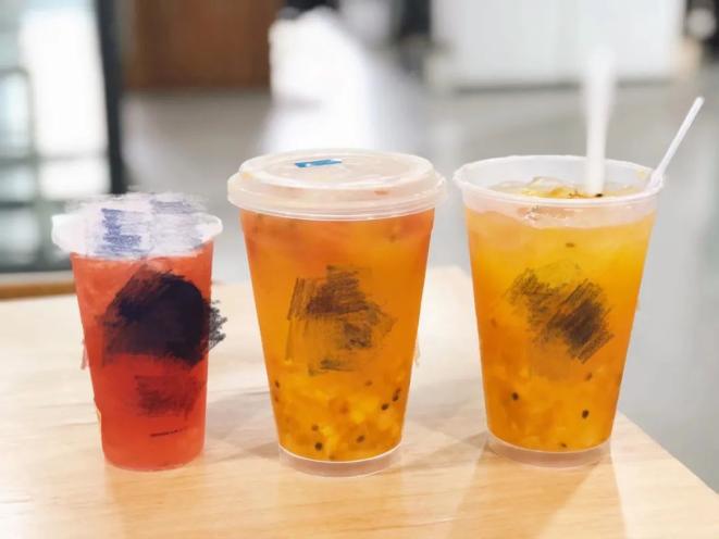 水果茶哪怕选不额外加糖,也巨甜 | 阿肚 拍摄还有一些酸奶和饮料,说自己“蔗糖未检出”,但果酱什么的也加得不少,吃起来也是甜得甚至有点腻。